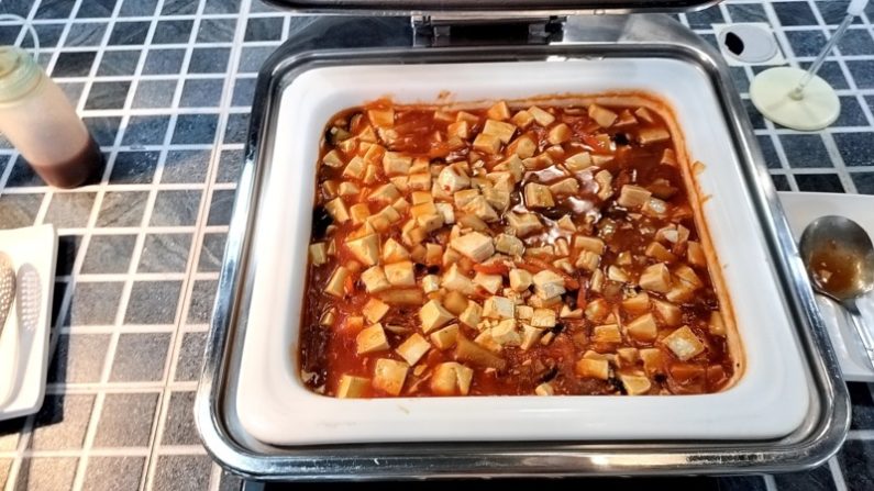生野菜をあまり台湾人は食べませんね。野菜炒め、炒り卵、ポテトフライ、ポークンビッツ、ハム。これぐらいで辞めておけばいいんですが、このあとにおかゆと魯肉飯をすこ~し食べました。