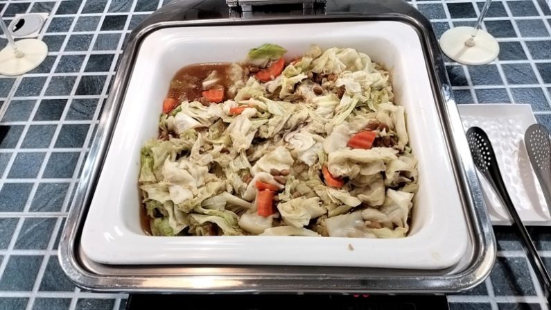 おかずもいろいろありました。と言っても野菜を炒めたり、煮たりしたものが多いですけど。左がわは春雨と野菜の煮物。