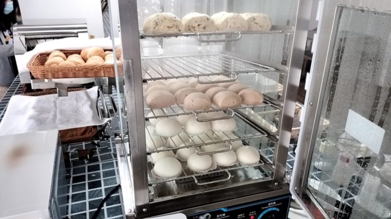 包子(パオツ=パン)、あんまんと味噌汁。パンは、食パンやフランスパンも置いています。