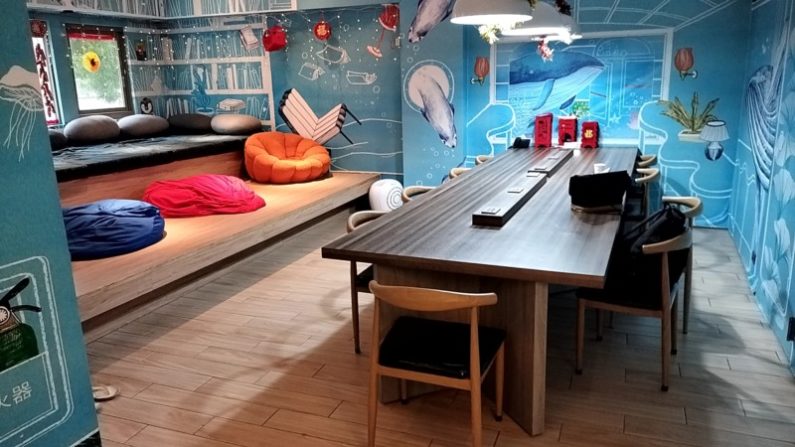 2階は、こんな感じで宿泊者用のラウンジがあります。コーヒー、ポップコーンも有って自由に食べたり部屋に持って帰ったりもできます。