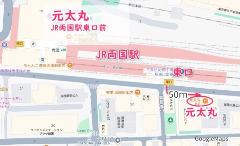 元太丸は両国駅東口を出た所すぐです。