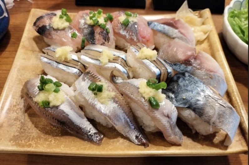 生アジ、生イワシ、サヨリ、生サバの4種類を各3貫ずつ。