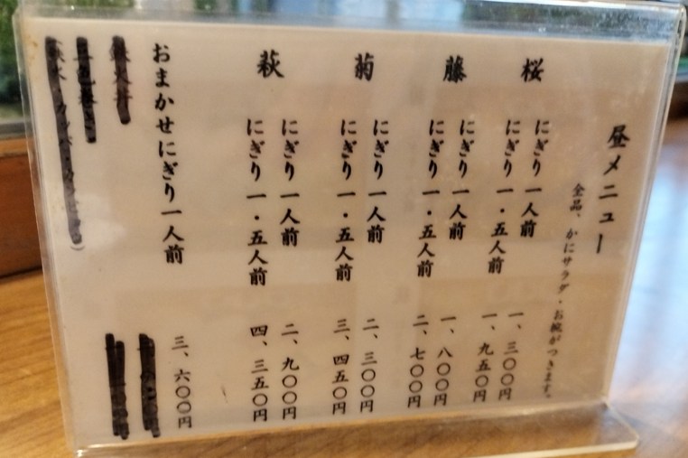 他にもランチの握りは、桜、藤、菊、萩、おまかせの5種類があります。