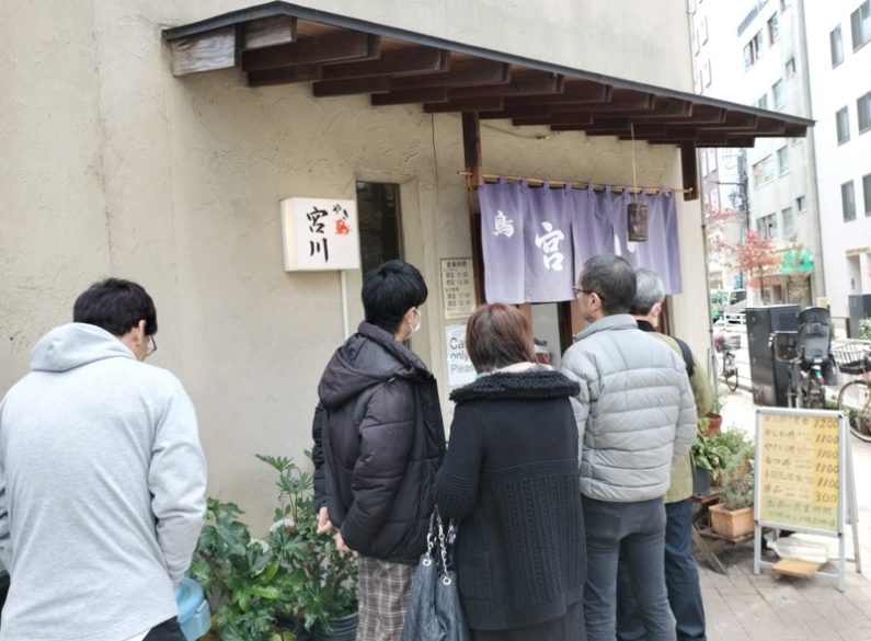 右側に写真、店外に行列している写真は、「宮川」で鶏料理が人気のようです。ランチでは唐揚げ定食、かしわ丼、焼き鳥丼などが人気のようです。
