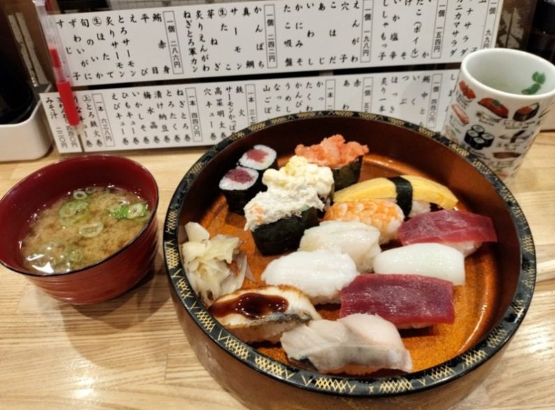 Bランチ握り12貫と巻物2個を頼みました。Cランチ握り16貫と迷いましたが、腹八分目でBランチにしました。
