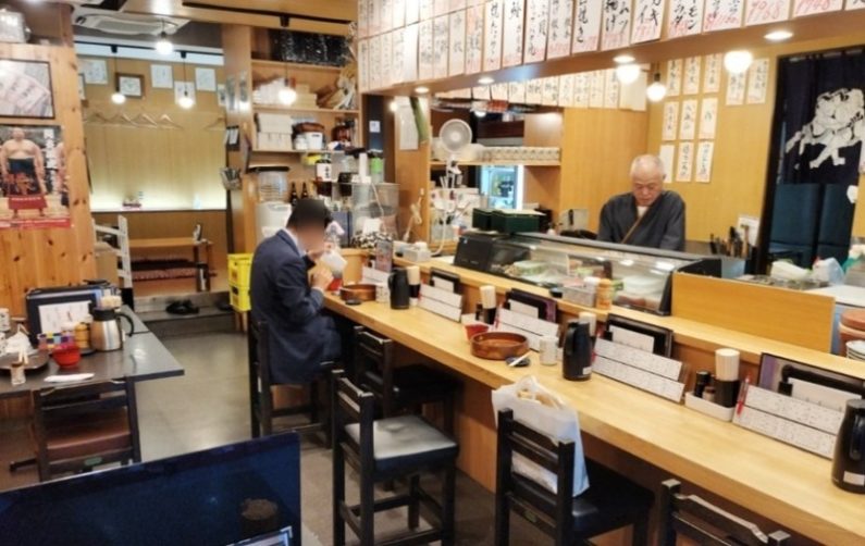 店内は、カウンター8席テーブル4人掛け2つです。ちなみにカウンターの女性が、光りものづくしを食べそこねた方です(笑)