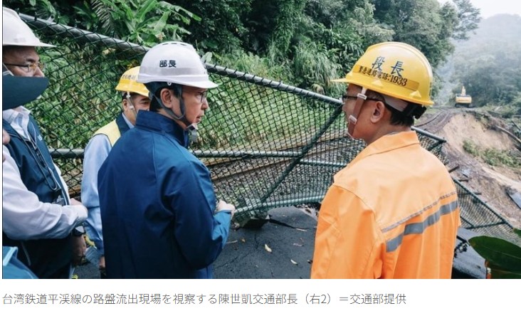 台湾鉄路(台鉄)平渓線は、豪雨の影響により一部区間で路盤が流出し、運休が続いている。陳世凱(ちんせいがい)交通部長(交通相)は27日、現場を視察し、来年の春節(2月17日)前までの復旧を指示した。